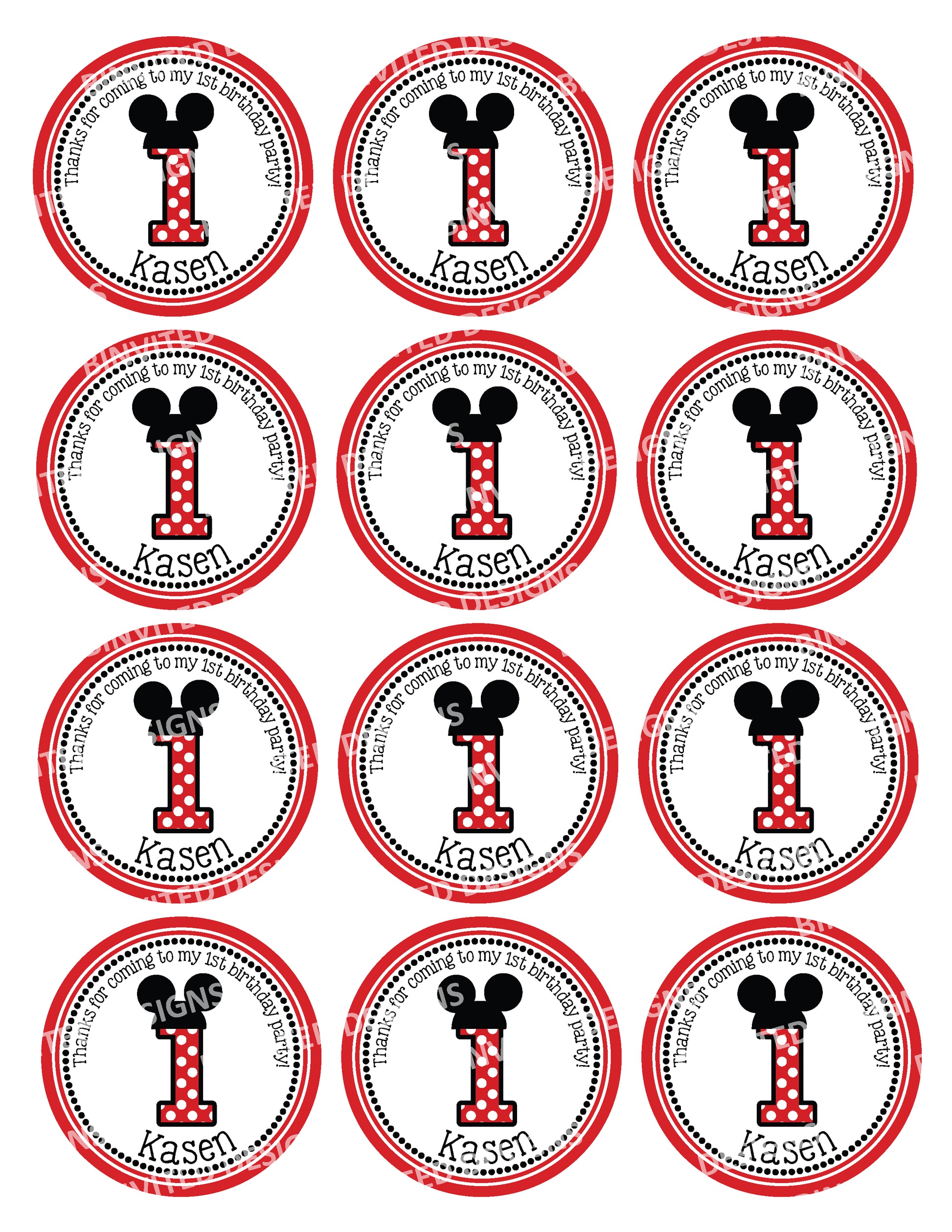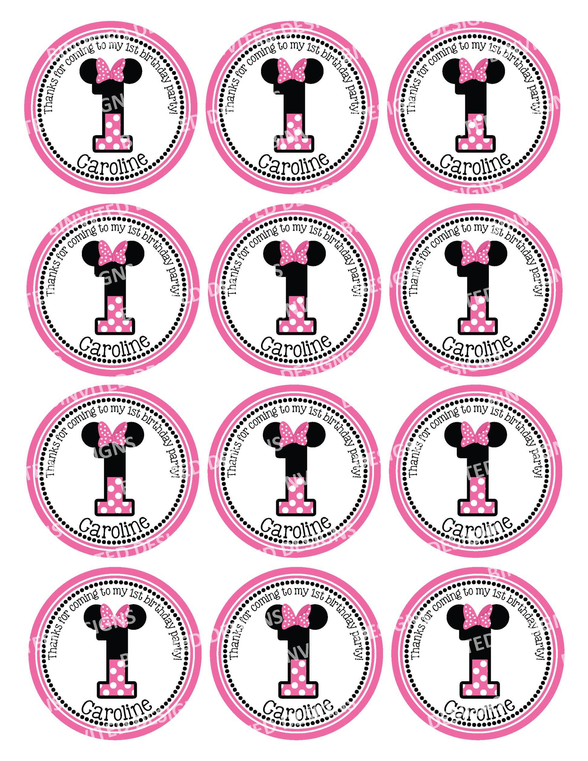 MICKEY & MINNIE MOUSE Pink or Red Personalized Stickers for Gift Bags, Party Favors! Printed or Digital!