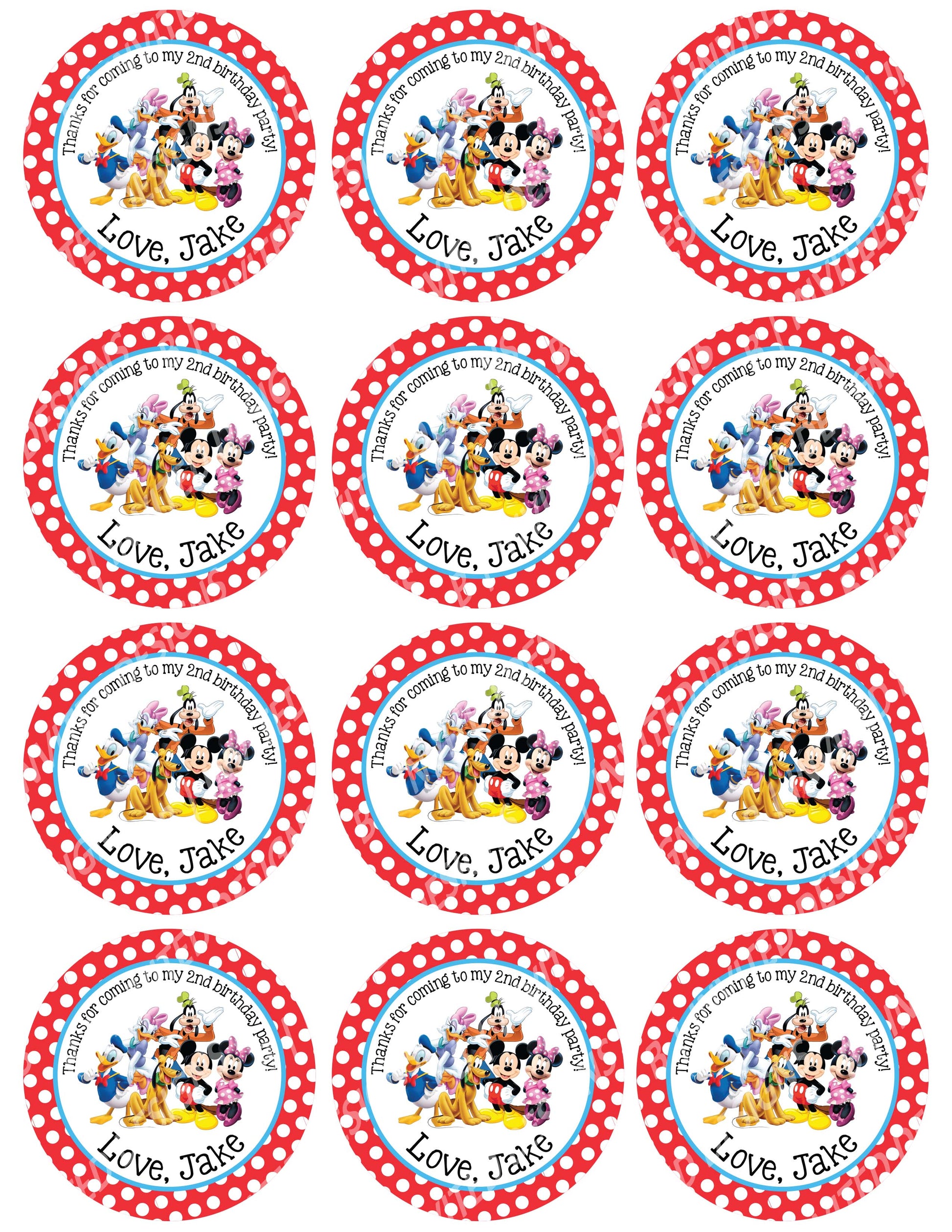 MICKEY MOUSE CLUBHOUSE Custom Red Polka-dot Stickers for Gift Bags, Party Favors! Printed or Digital!