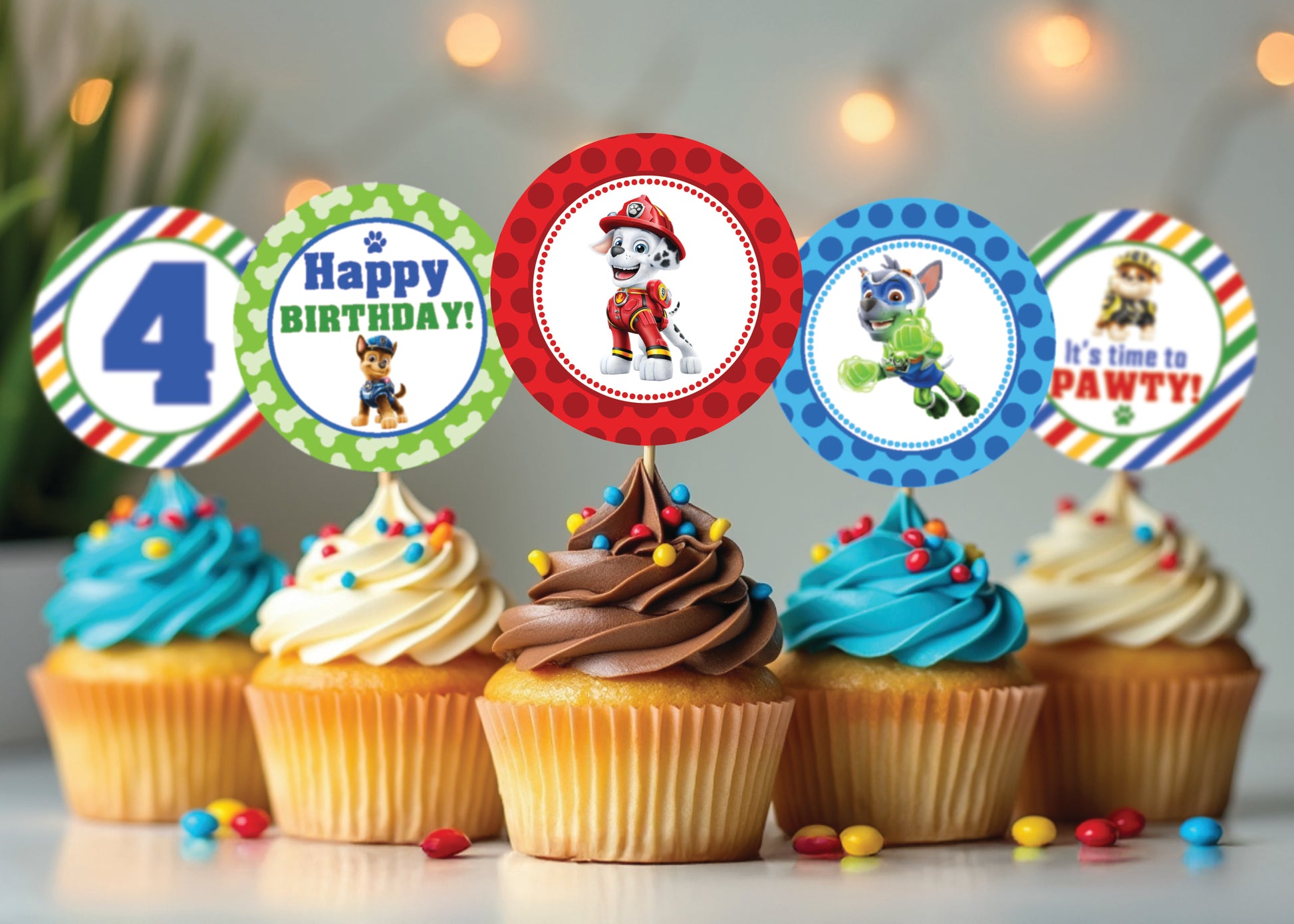 MIGHTY PUPS Paw Patrol Cupcake Toppers - 2 Inch or 2.5 Inch! Digital OR Printed & Fully Assembled!