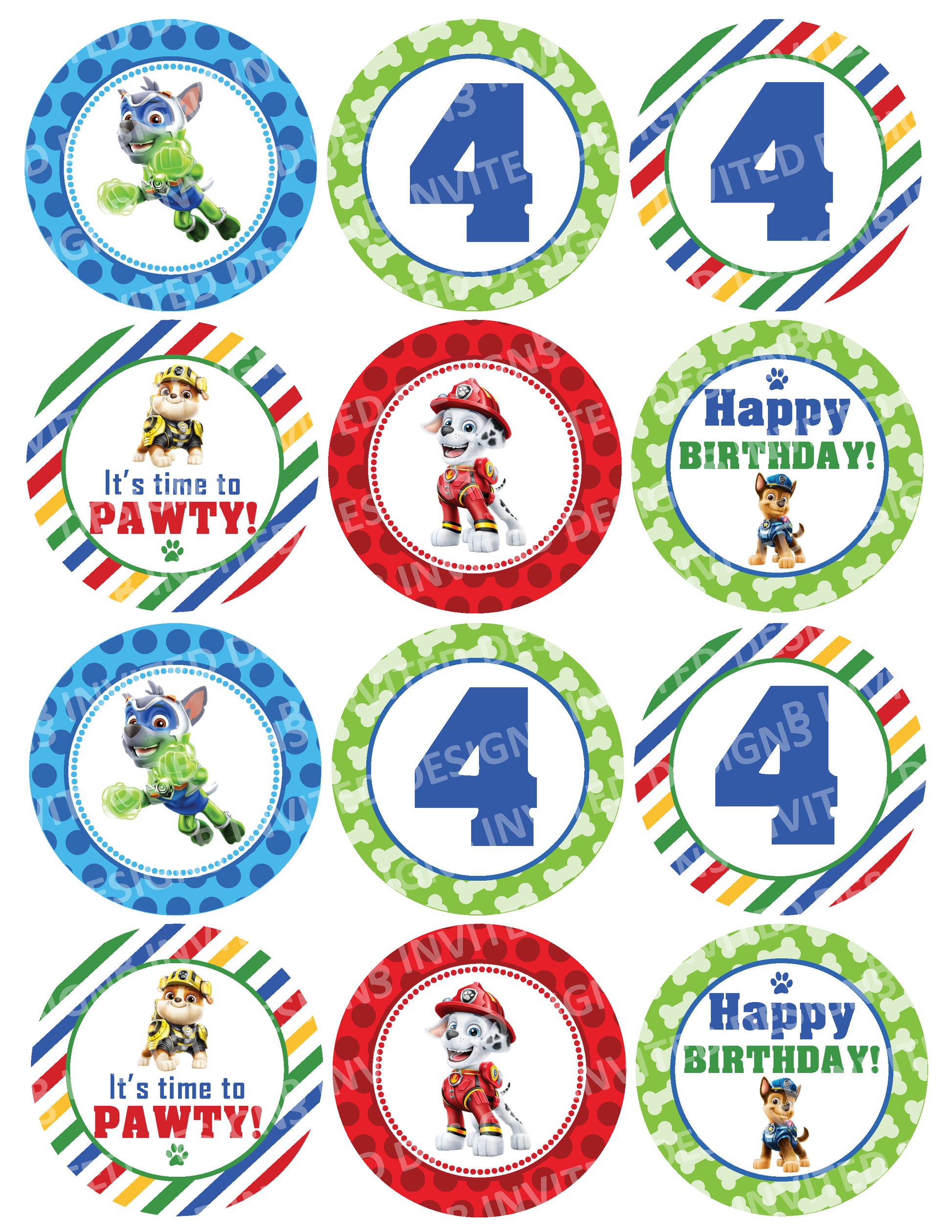 - MIGHTY PUPS Custom Stickers for Gift Bags, Party Favors! Printed or Digital! Marshall, Rocky, Rubble!