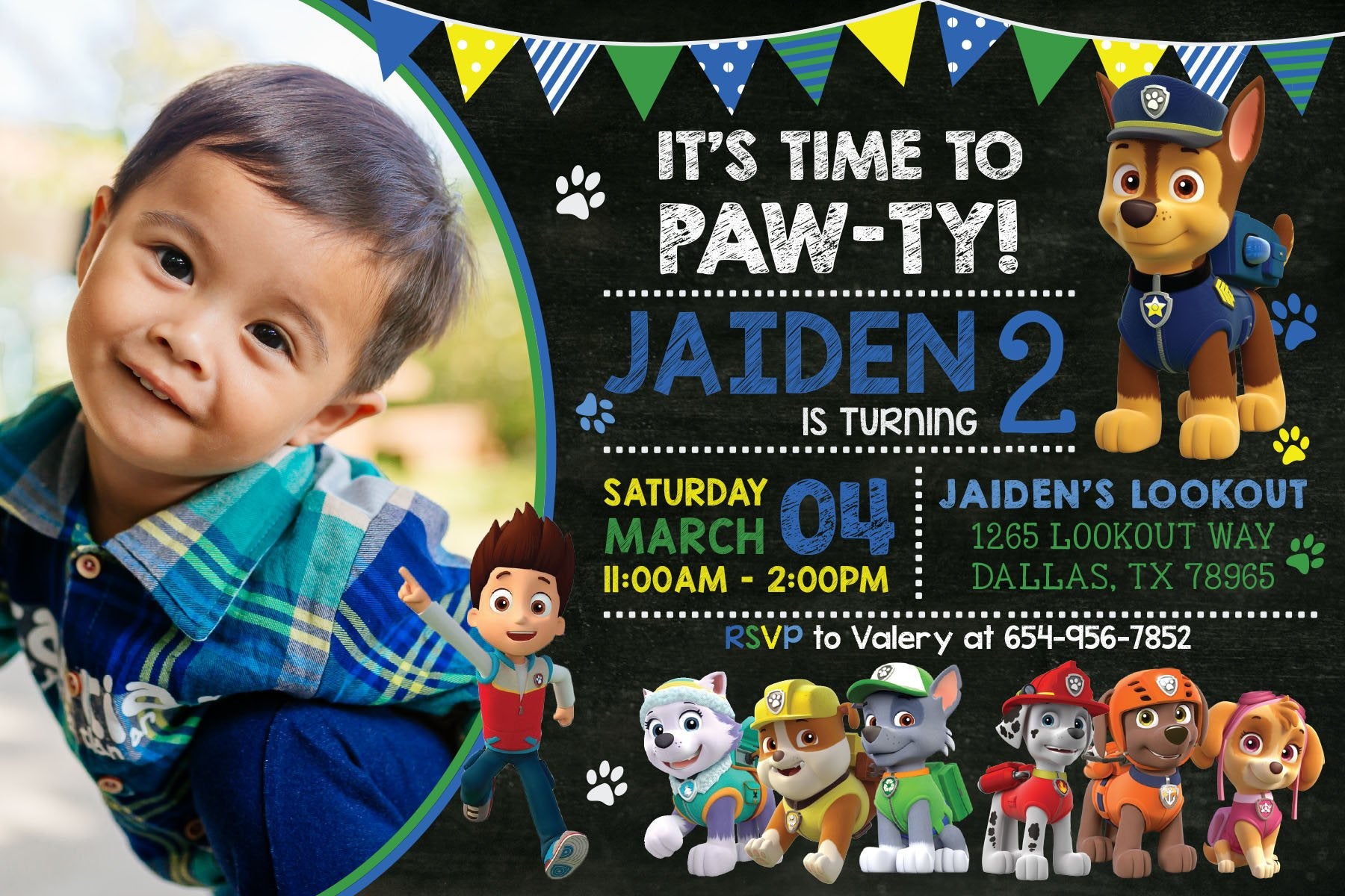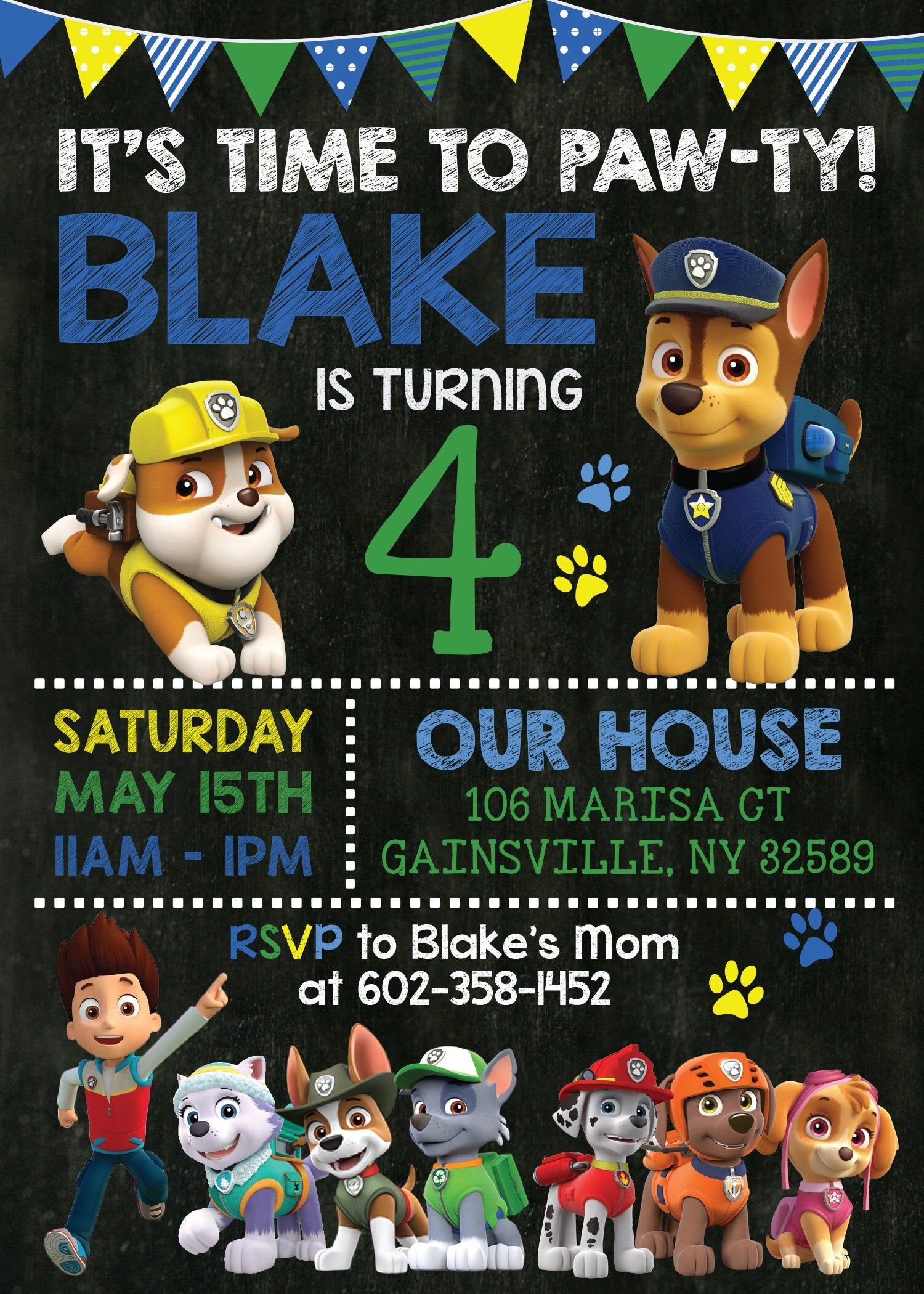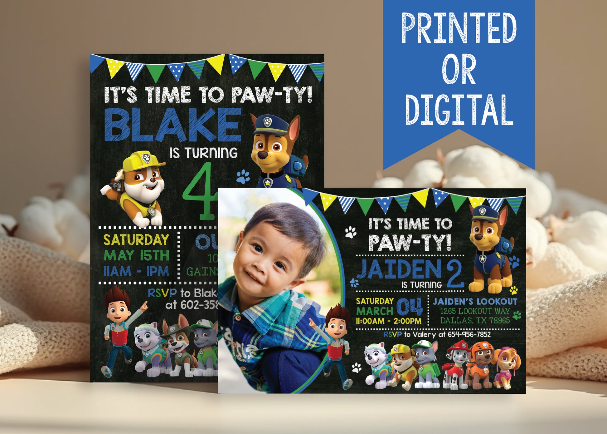 PAW PATROL Boy Digital or Printed Chalkboard Birthday Party Invitation with or without Photo!