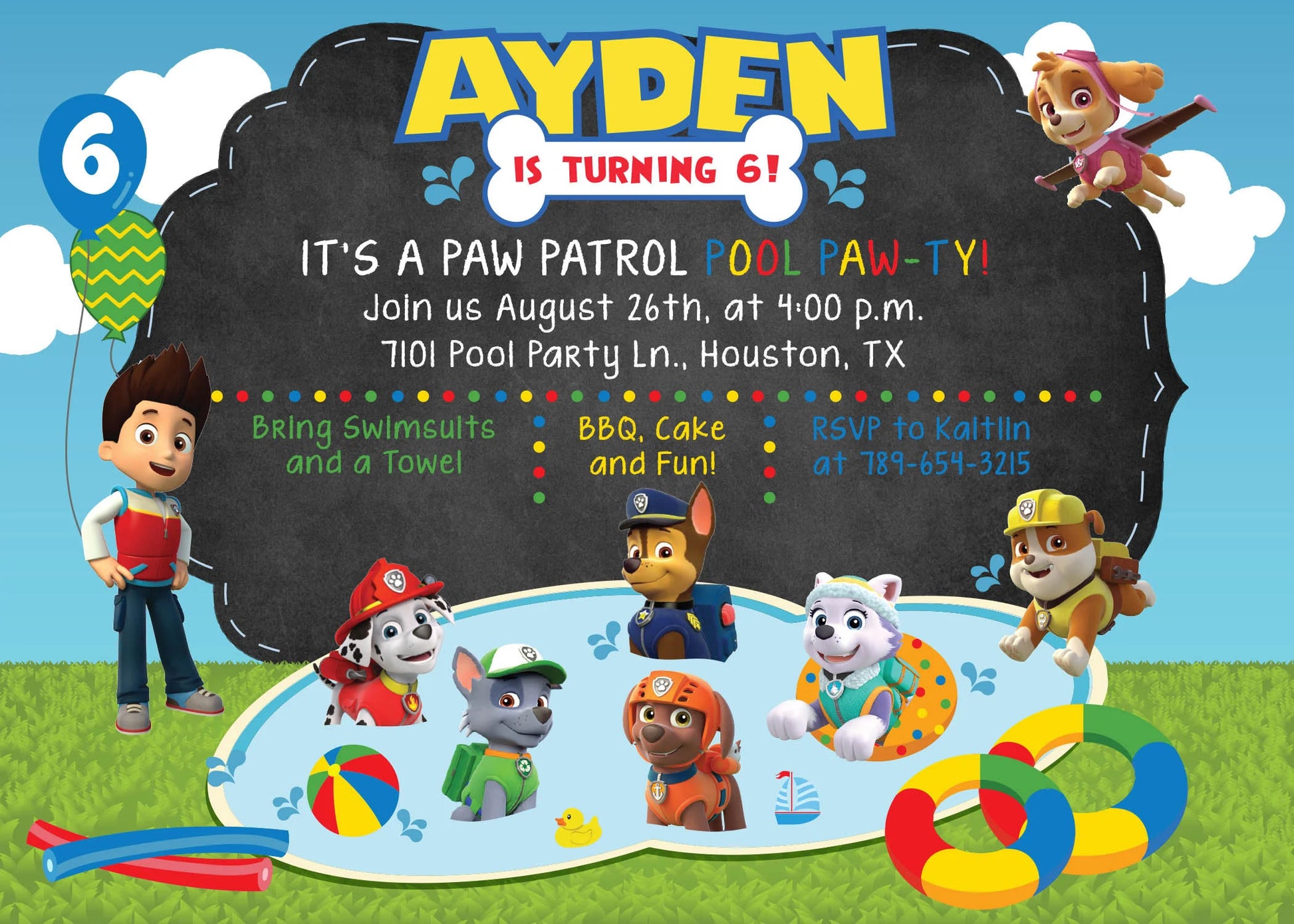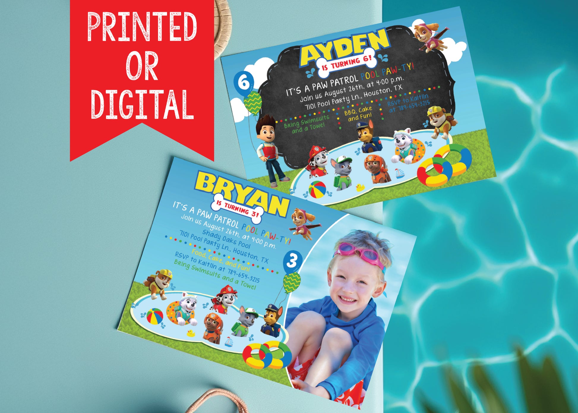 Paw Patrol POOL PARTY Digital or Printed Birthday Party Invitation with or without Photo!