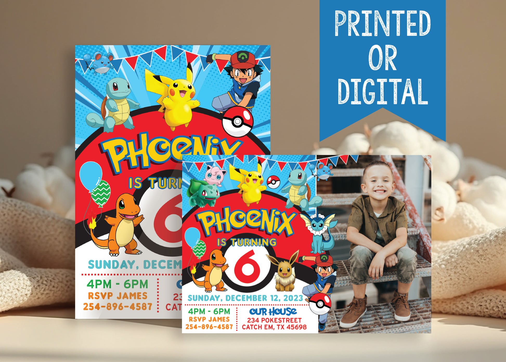 POKEMON Pikachu Birthday Party Invitation with or without Photo - Printed or Digital File!