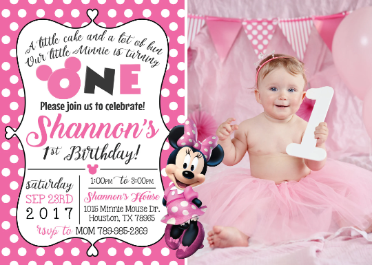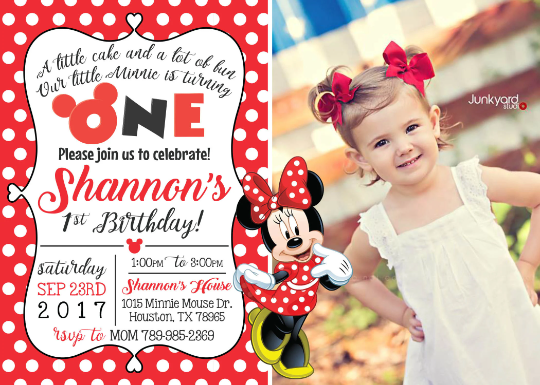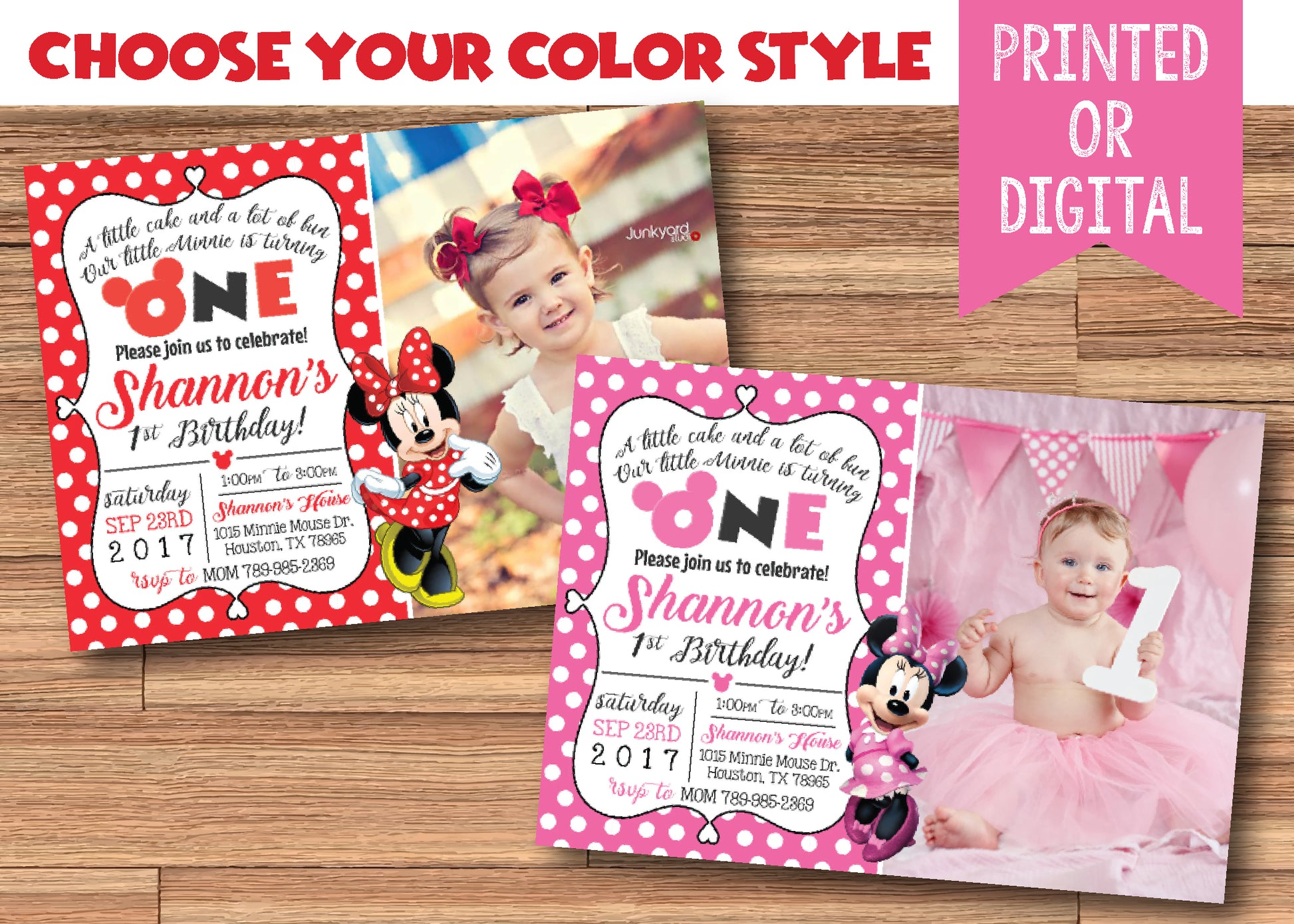 RED or PINK Polka-dot Minnie Mouse Birthday Invitation with Photo! Printed or Digital!