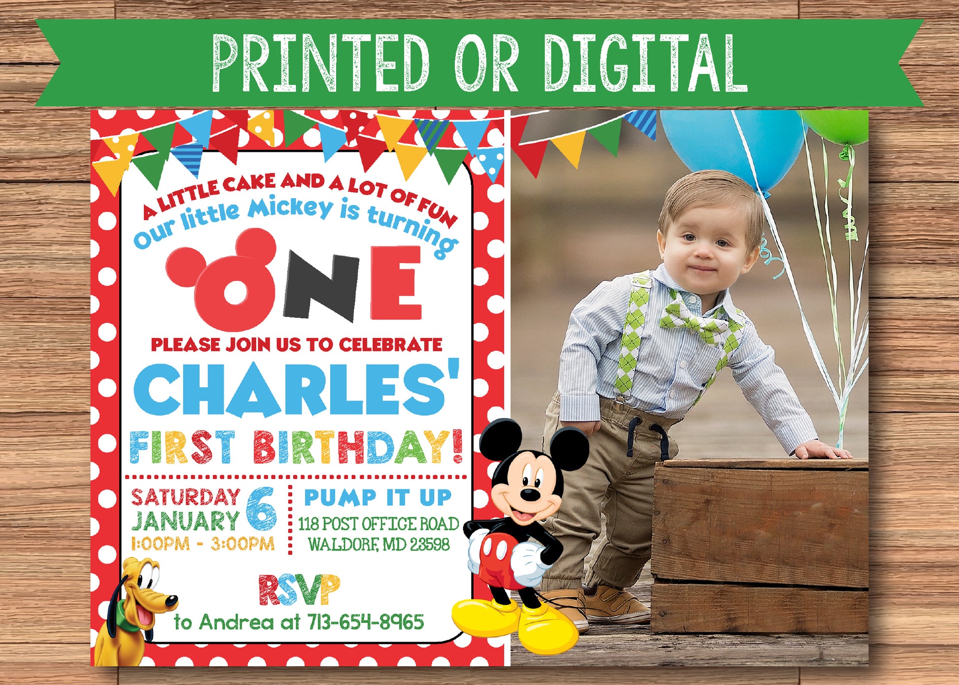 RED Polka-dot MICKEY MOUSE Birthday Invitation with Photo! Printed or Digital!