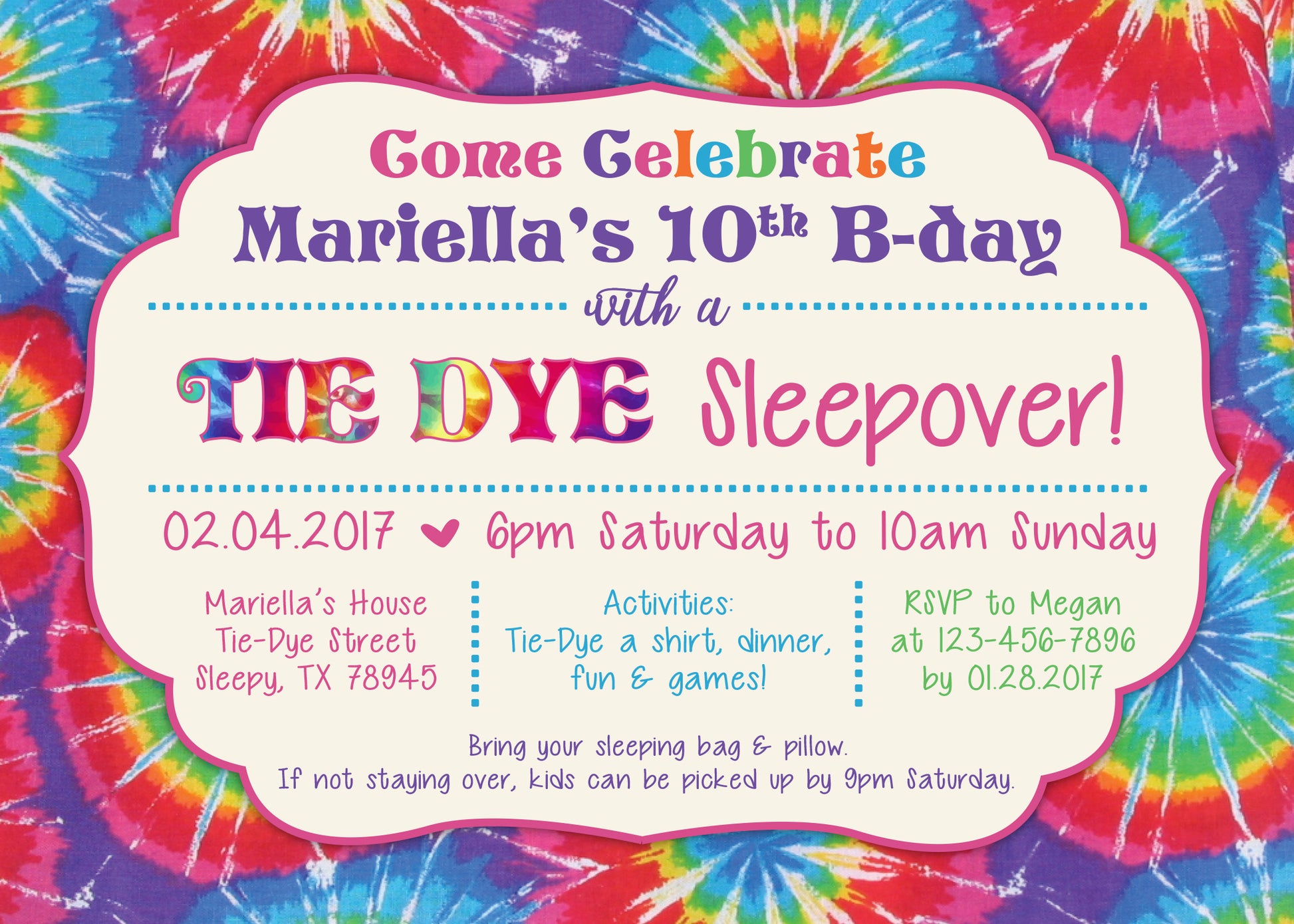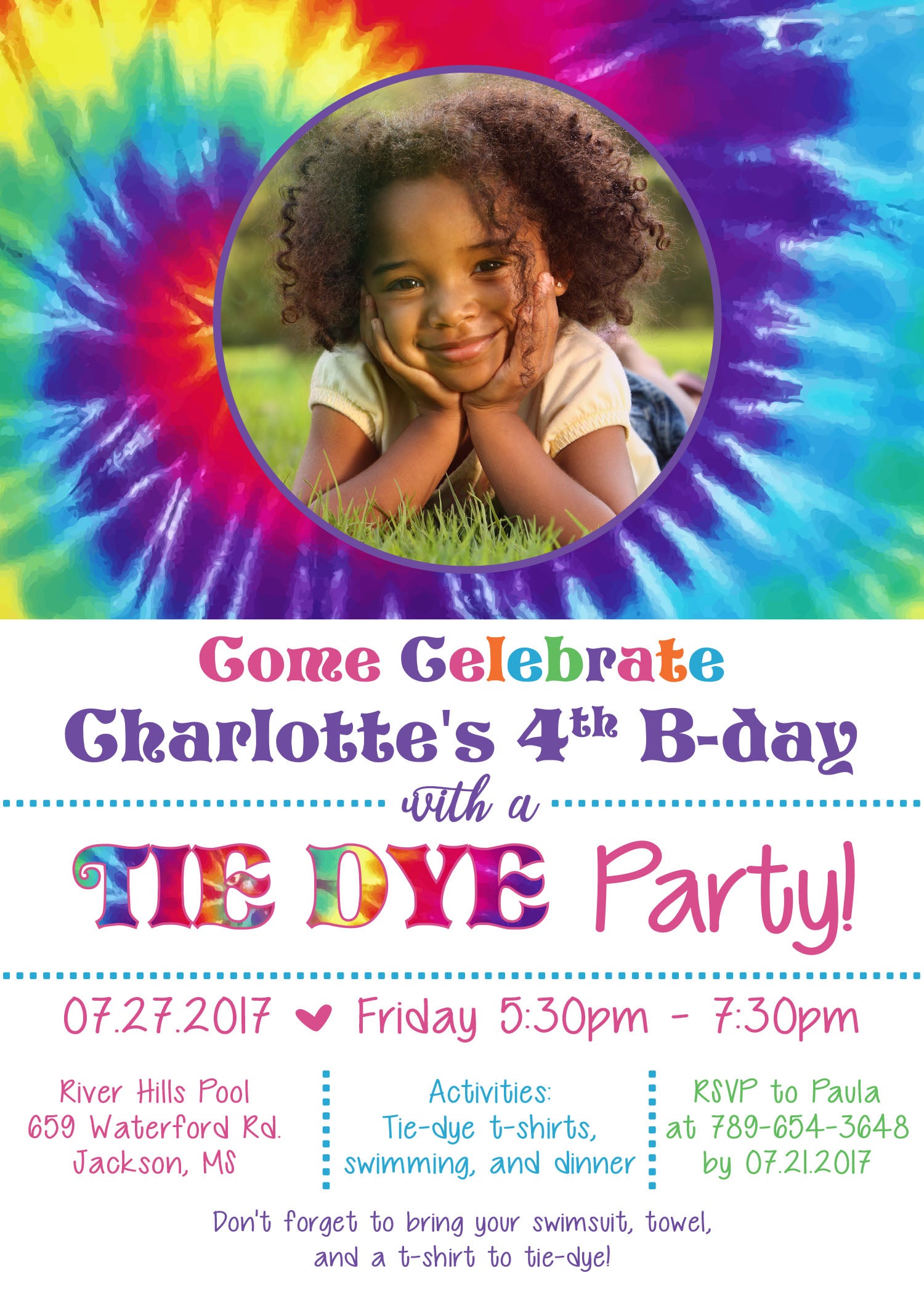TIE DYE PARTY Birthday Invitation with or without Photo - Printed or Digital File!
