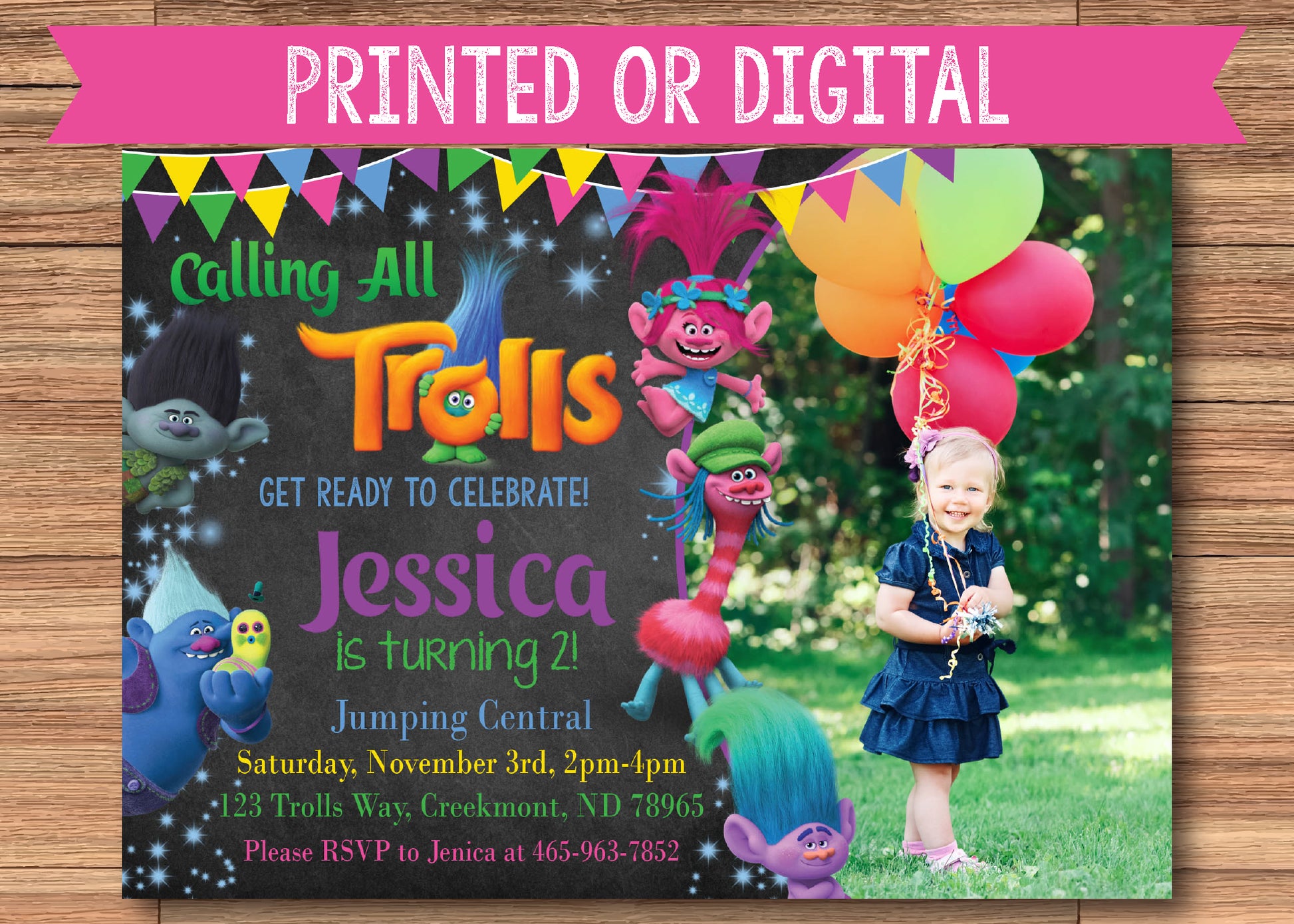 TROLLS Poppy, Branch, Cooper Birthday Party Invitation With Photo! Printed or Digital!