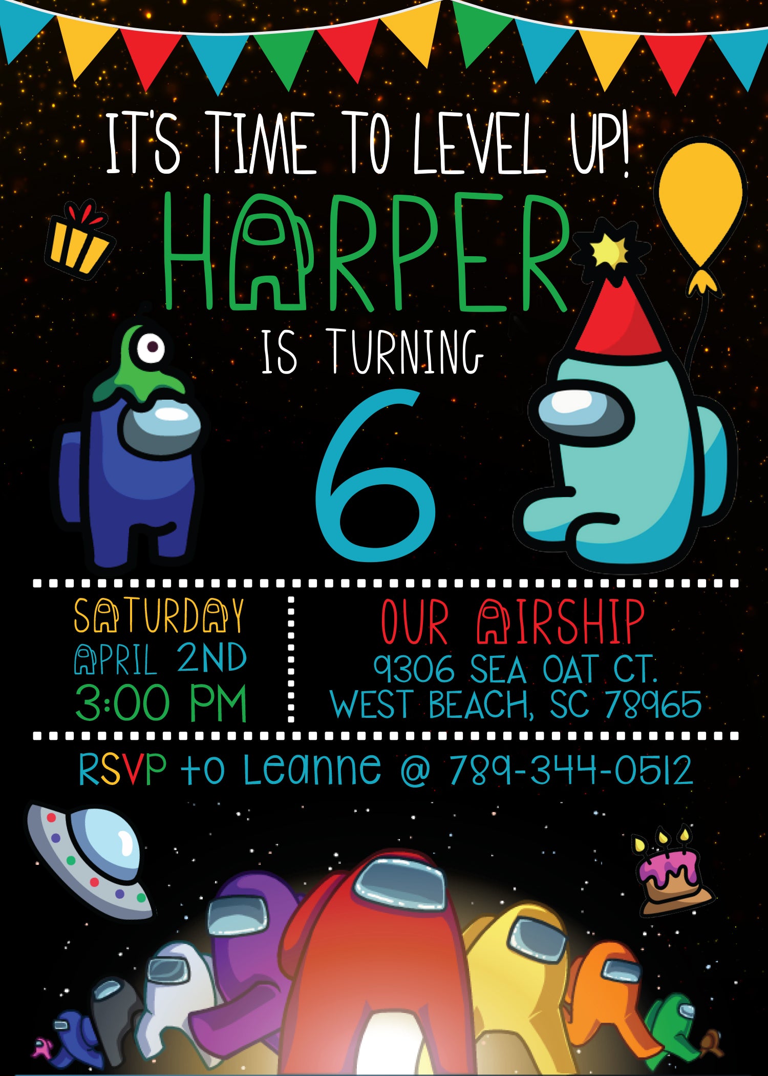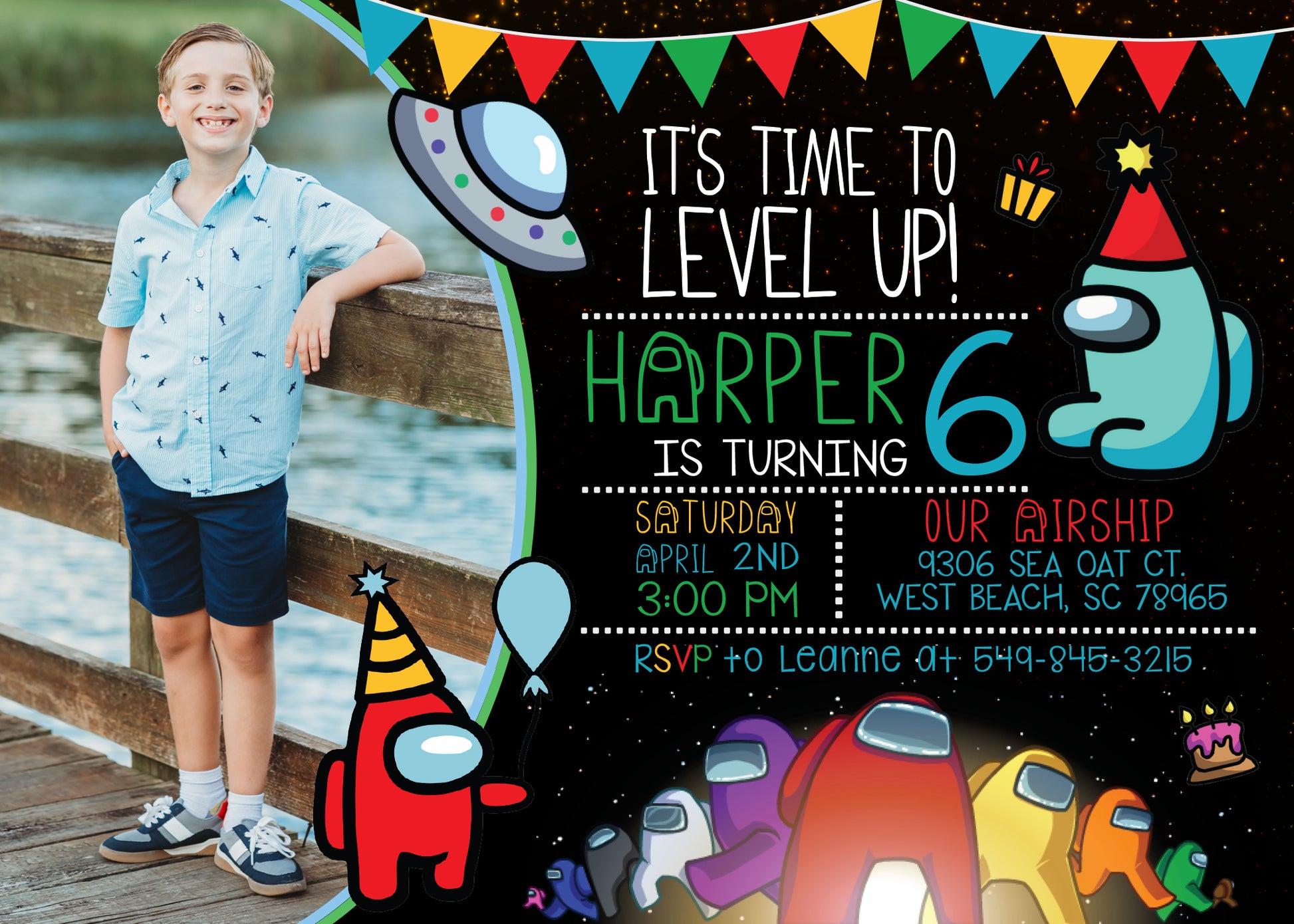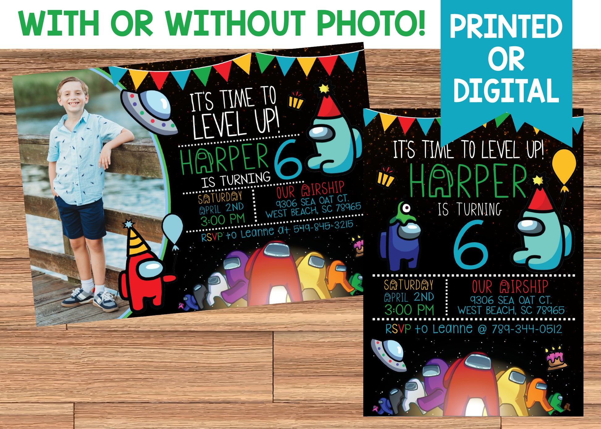 AMONG US Theme Birthday Party Invitation with or without Photo - Printed or Digital File!