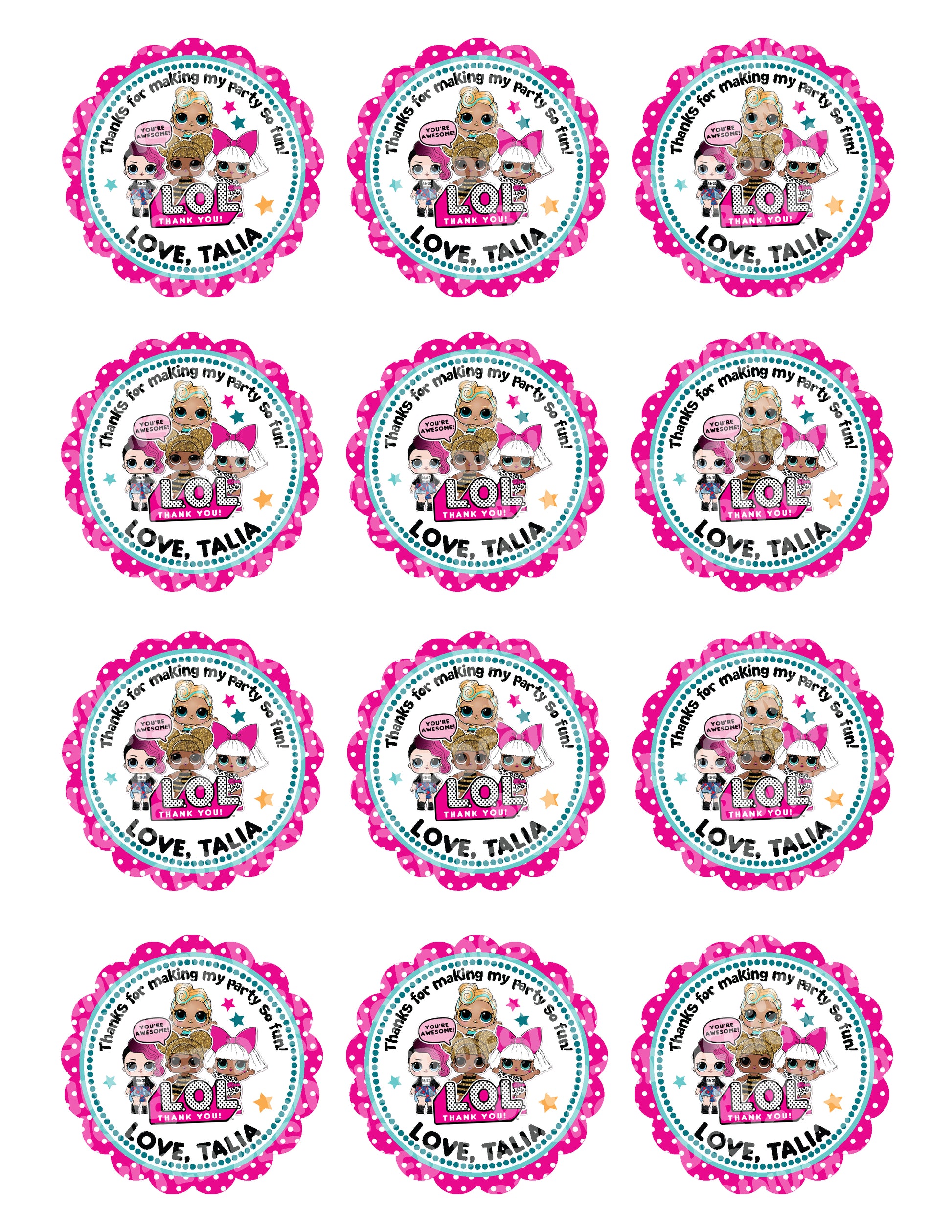 LOL DOLLS Custom Personalized Stickers for Gift Bags, Party Favors! Printed or Digital!