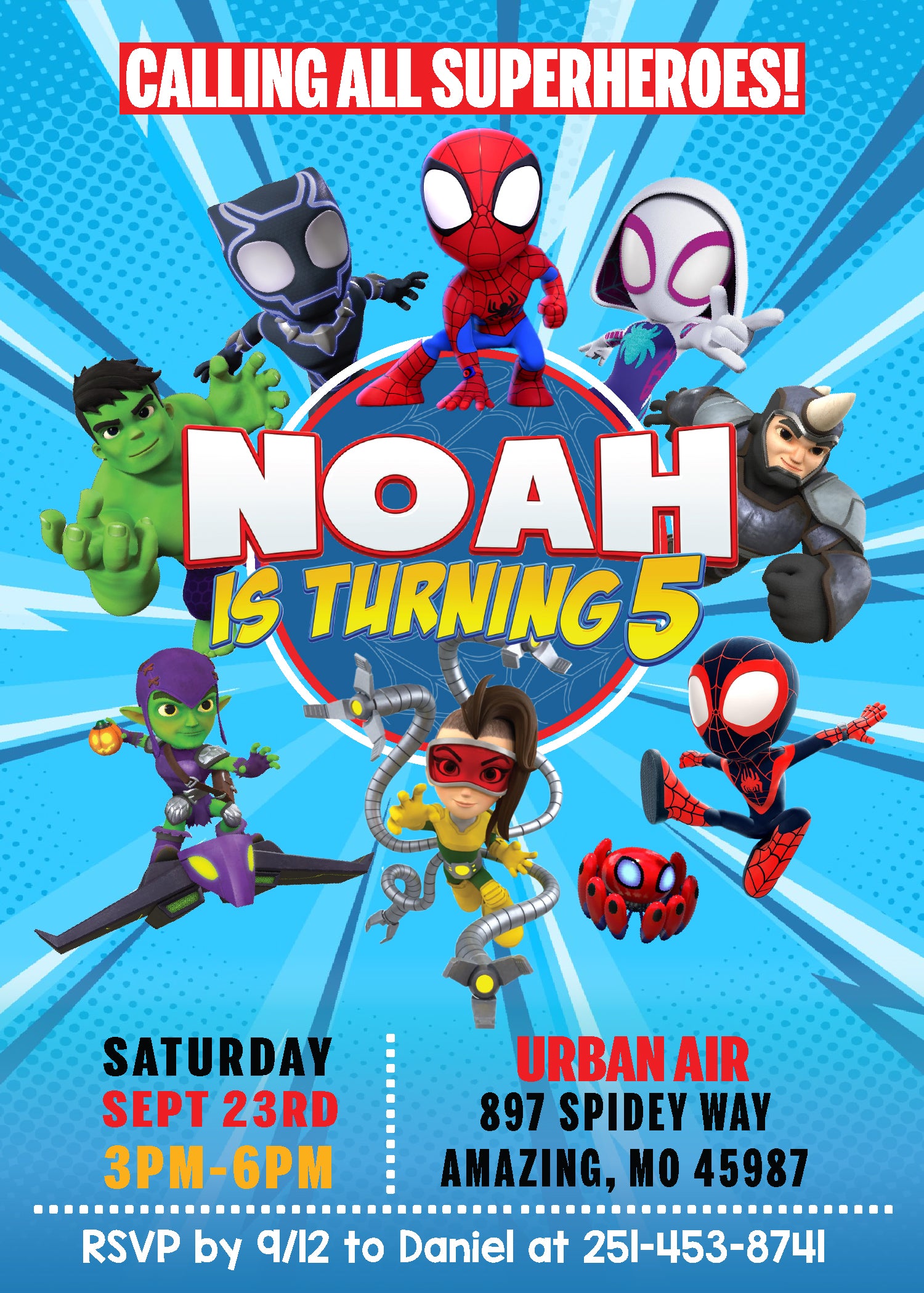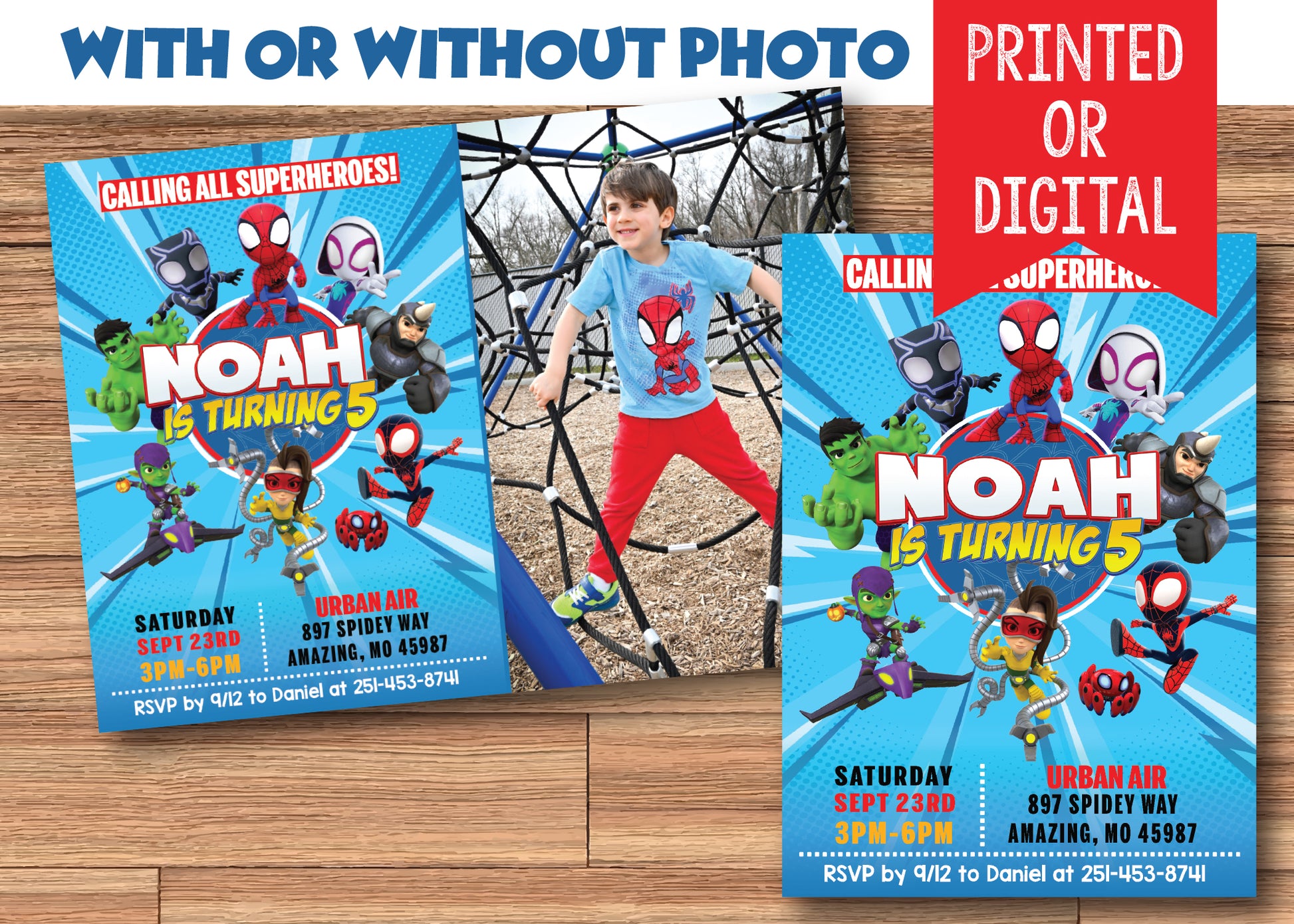 SPIDEY & His AMAZING FRIENDS Digital or Printed Superhero Birthday Invitation - with or without Photo!